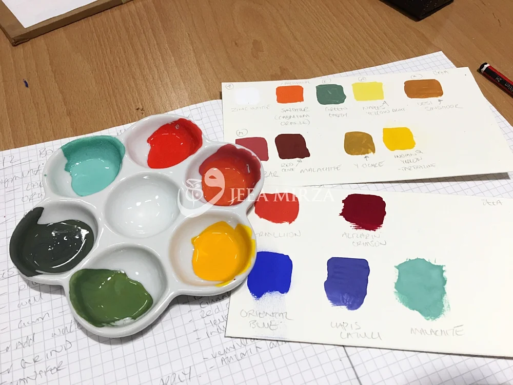 At this stage, I imagine many of you are thinking "how much gum did they actually add?" and "how much water exactly?" oh and "for how long do you really need to grind each pigment; and is it possible to over or under grind?"