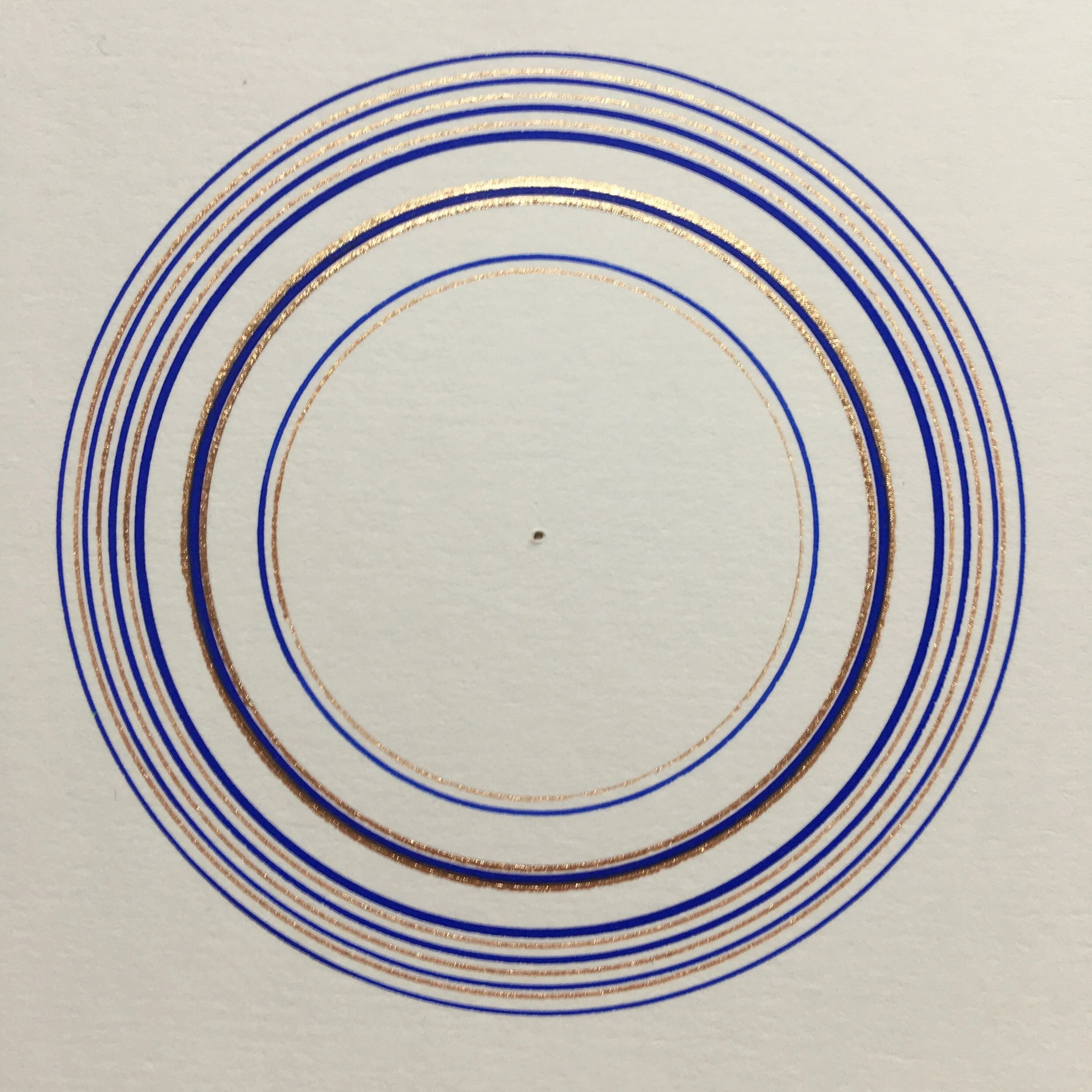 6. Series of concentric circles drawn using watercolour paint with compasses and a steel pen attachment